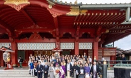 - 正式参拝のあと、荘厳な朱塗の本殿にて集合写真を撮影します。
